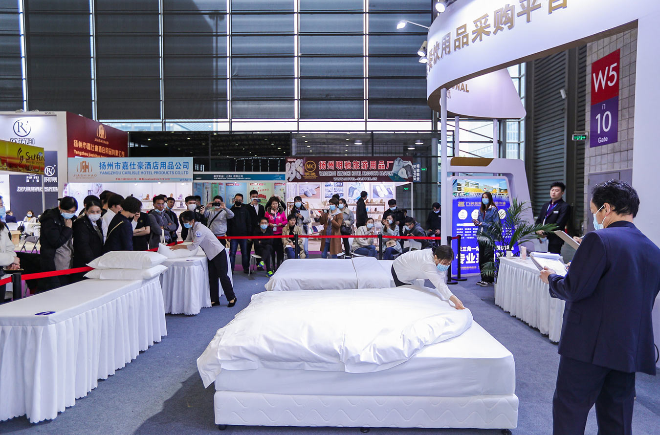 Şanghay Uluslararası Otelcilik Tasarımı ve Malzemeleri Fuarı - Otel Kat Hizmetleri Yarışması - Şangay Uluslararası Otelcilik Tasarımı ve Malzemeleri Fuarı. Yarışma, otel kat görevlilerinin çarşaf, yorgan ve yastıktan oluşan yatak yapımında rekabet ederek hizmetteki ustalıklarını ortaya koymaları için düzenleniyor. Otel personelinin temizlik becerilerini paylaşmasına yardımcı olur ve otel malzemeleri pazarının gelişimini teşvik eder.